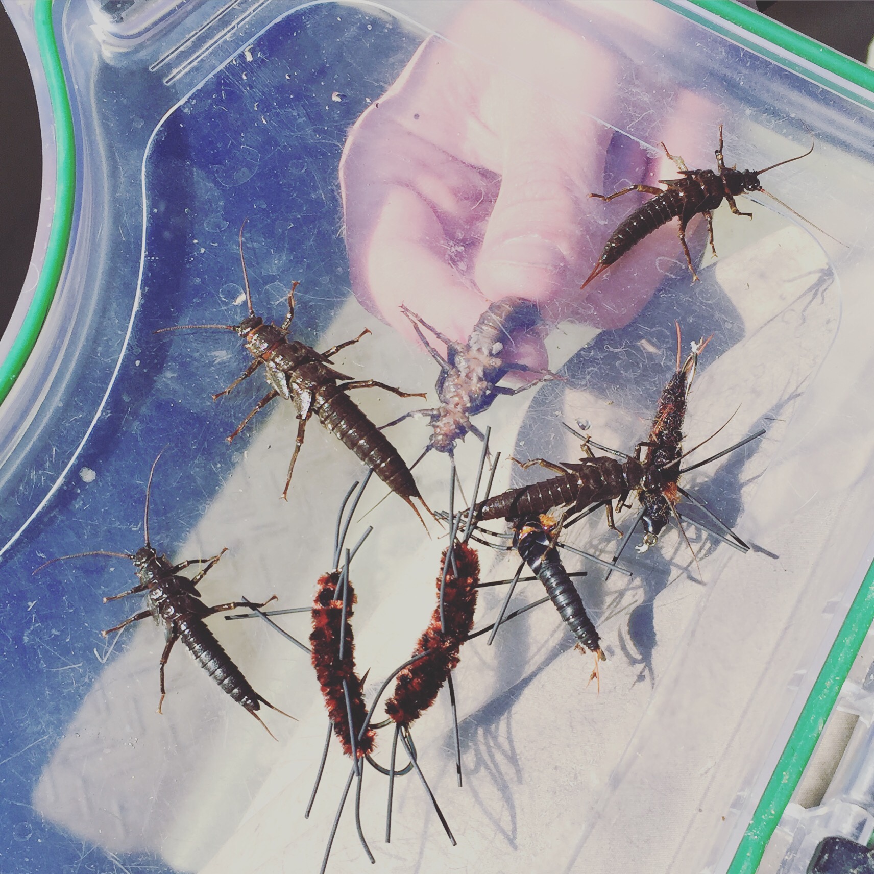 Dry flies aren’t happening yet as much as we would like. A few. The MB hatch is amazing but the sunshine seems to keep fish down in the afternoon. We need some clouds. Salmon Flies are hatching in the am and I’ve had one fish hit the dry but that should pick up now that things seem to be really starting. Salmon Fly Nymphs are staging to hatch with groups of them under the rocks and structure along the banks. It’s coming.