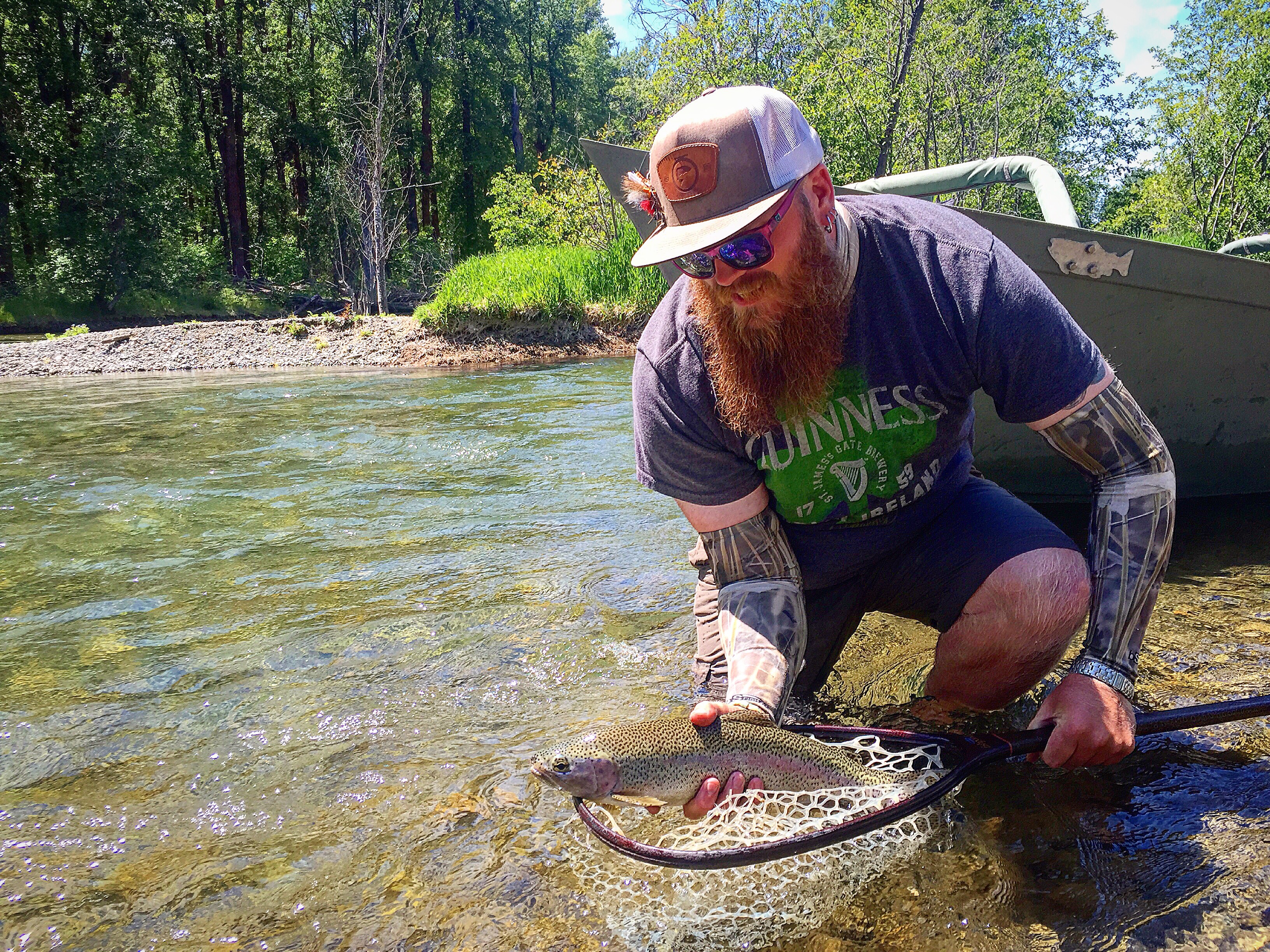 I encourage all anglers to shop around for guides, there are a lot here.  I can guarantee you that our local independent guides here are the best of the best and if I’m booked, I make sure to refer clients to other independents like myself.  You can book a local independent guide for way less than the outfitters, have a more personable experience, support a small business owner, and if you book with me, we can fish areas of the river that others don’t frequent.  There is 70 miles of river to fish, and about 75% of anglers and guides fish the bottom 3rd of this river.  Fishing the upper river in high flows, 3400 cfs today, takes a bit of skill and these fish are wicked fun in that heavy water!
