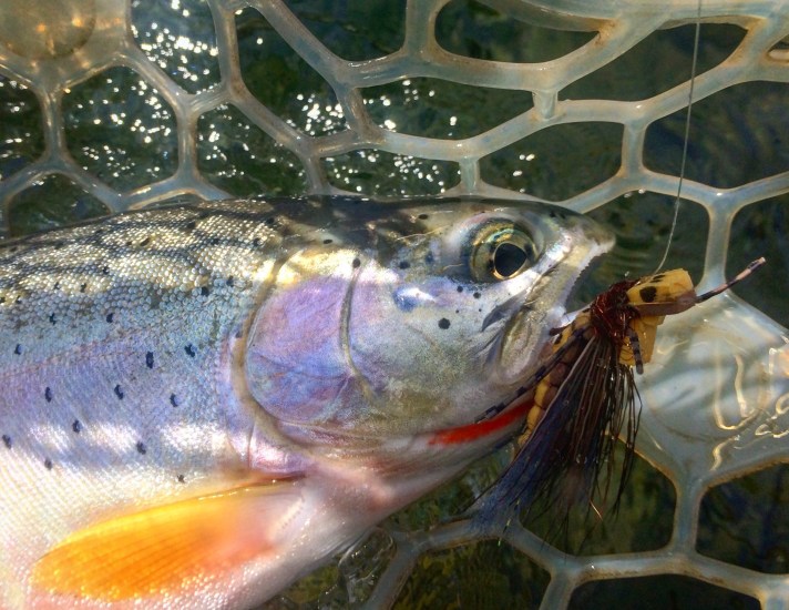 Even though there are not a vast number of them on the river surface these fish know they are hatching and they act appropriately. Especially cutties. Fish will seek out, chase down, gobble up, skyrocket for, and absolutely smash the crap out of them. And there’s a reason why. A Golden is a big meal. Could feed a fish for a day kinda meal. So when they decide to eat it… they EAT it. That big bug can fly, it is super fast on the river swimming, it’s big and crunchy with a hard shell and spiked legs…it takes work to eat it. So fish like to make sure they get it in the first try…so they smack it hoard!!!