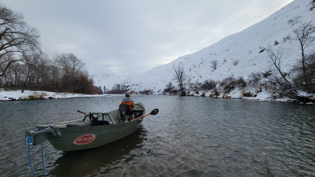 Floating the canyon in the winter is very pretty. But damnit it’s cold. Lol. The fish are podded up in deep, slow water. A few more are moving up and around each day. Getting ready. The spawn isn’t far off, and it has been a long frigid winter. Trout have to eat, and every tenth of a degree, the water warms a little more activity begins. Like the snow trickling as it melts at first, but as things change and move, it begins to gush, flood, and rage. Trout are no different.