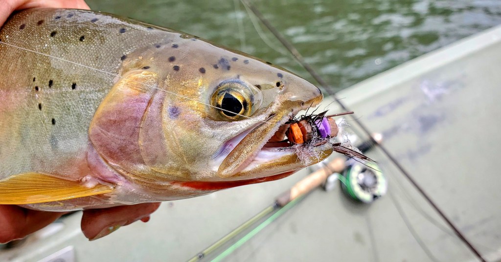 Trout are ravenous this time of year. Many are post spawn and hungry. Water temps have crept up so trout metabolism is higher meaning they need to eat more calories. Salmon Flies meet that need and then some. The takes on Salmon Fly dries are explosive. More so than skwallas due to warmer water temps. Trout are turbo charged and have no problem chasing down amd crushing the absolute fuck out of big orange and black bugs. Many times trout take multiple swipes at these bugs because they are so large and hard to eat. They need to be chewed and broken apart to swallow…unless your a really big trout with a toilet bowl for a mouth.