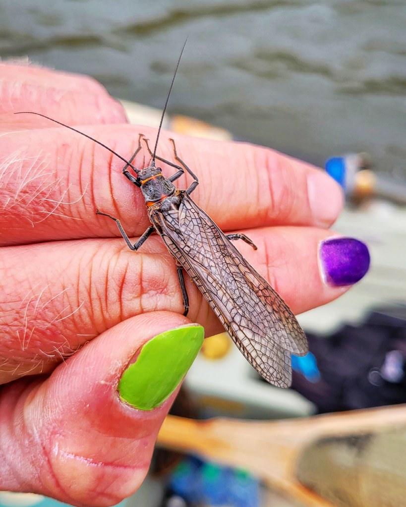 After mating is finished, females stick around and develop an egg sac filled with more stonefly larvae for the next generation. The culmination of her existence of 4 seasons as a nymph just for a few hours of life as an adult to pass on genetics to the next generation. It’s amazing. Truly. If you can’t see that I invite you to come bare witness to the Salmon Fly Hatch.