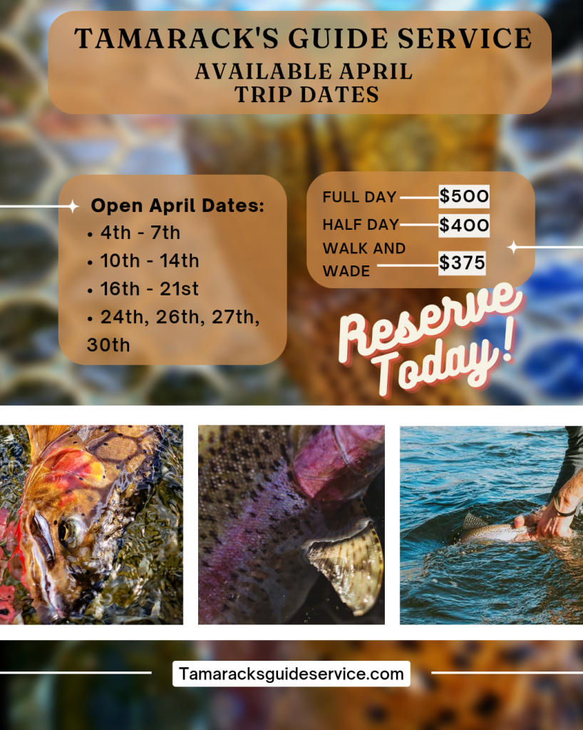 I have been fishing the Yakima River and its surrounding tributaries, creeks, and lakes for 10 years. I have been tying flies specific to this river for 10 years as well. I have guided not only the river but also many of the hiking and mountaineering trails in the area and fished some of the more remote lakes and streams. I love to fish the Yakima River and have been running my driftboat here for 5 years. I guide a little differently than the other services here and have a slightly different philosophy on guided fishing trips. Its all about the experience, and while I can't promise there will always be cooperative trout, there will always be good times. I learned from some of the greatest anglers the Yakima has both on the water and at the vise and I guide to share and pass on that knowledge and expertise so others can enjoy this river as much as I do. I love to teach people to fish, I love to teach people how to read the river, and I love showing people the beauty and art of fly fishing. My service is a bit cheaper but that is because I have no shop taking a percentage. I use a lot of my own fly designs and patterns that no other guide has and have spent the past 10 years fine tuning my tying and patterns specific to this river. I have flies, leaders, tippets, and fly rods and reels, and always welcome anglers to bring their own gear. If you need waders and boots I can arrange for a rental. I support my local fly shop for my trips as well as it is important to me that our local shops stay open. When you take a trip with me it all about fishing and the experiences that happen along the river. I love getting my clients to have great moments with our trout here. Ask me all the questions you can, I want to teach as much as you want to learn. Whether you are an experienced angler or brand new to the sport I love sharing this river with people. I guide the Yakima River and many other secret waters in the area. When you give me a call I will ask you lots of questions as I want to make sure you have the best experience possible while chasing the trout we have here. Whether its a guided river float or a hike and fish, or a walk and wade to the secret places, I can help make your fly fishing experience memorable and fun. Give me a call today and lets set up a time to go fishing. View all posts by tamaracksguideservice