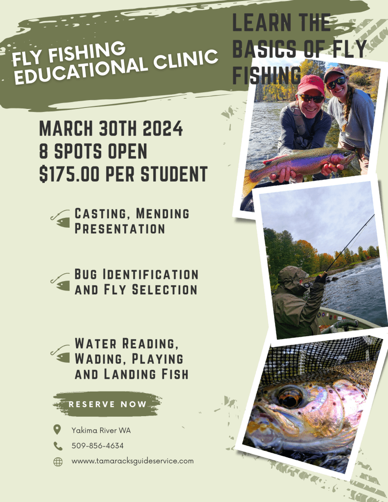 I have been fishing the Yakima River and its surrounding tributaries, creeks, and lakes for 10 years. I have been tying flies specific to this river for 10 years as well. I have guided not only the river but also many of the hiking and mountaineering trails in the area and fished some of the more remote lakes and streams. I love to fish the Yakima River and have been running my driftboat here for 5 years. I guide a little differently than the other services here and have a slightly different philosophy on guided fishing trips. Its all about the experience, and while I can't promise there will always be cooperative trout, there will always be good times. I learned from some of the greatest anglers the Yakima has both on the water and at the vise and I guide to share and pass on that knowledge and expertise so others can enjoy this river as much as I do. I love to teach people to fish, I love to teach people how to read the river, and I love showing people the beauty and art of fly fishing. My service is a bit cheaper but that is because I have no shop taking a percentage. I use a lot of my own fly designs and patterns that no other guide has and have spent the past 10 years fine tuning my tying and patterns specific to this river. I have flies, leaders, tippets, and fly rods and reels, and always welcome anglers to bring their own gear. If you need waders and boots I can arrange for a rental. I support my local fly shop for my trips as well as it is important to me that our local shops stay open. When you take a trip with me it all about fishing and the experiences that happen along the river. I love getting my clients to have great moments with our trout here. Ask me all the questions you can, I want to teach as much as you want to learn. Whether you are an experienced angler or brand new to the sport I love sharing this river with people. I guide the Yakima River and many other secret waters in the area. When you give me a call I will ask you lots of questions as I want to make sure you have the best experience possible while chasing the trout we have here. Whether its a guided river float or a hike and fish, or a walk and wade to the secret places, I can help make your fly fishing experience memorable and fun. Give me a call today and lets set up a time to go fishing. View all posts by tamaracksguideservice
