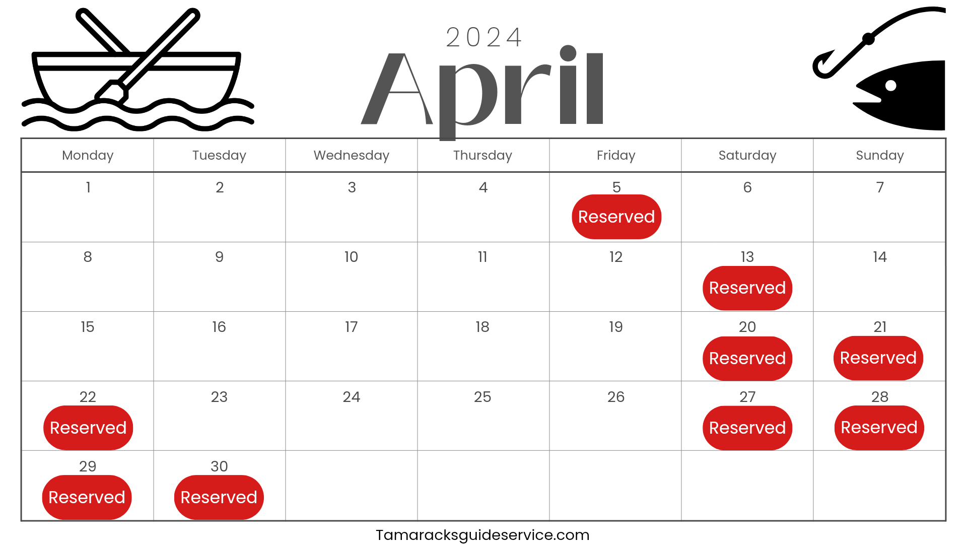 They are filling up fast anglers. I’m limiting my days in 2024. Only 32 days left open to reserve!