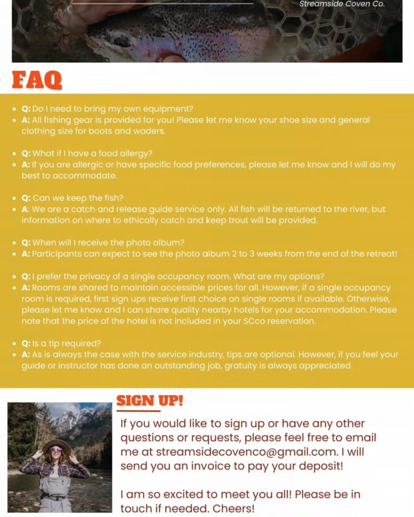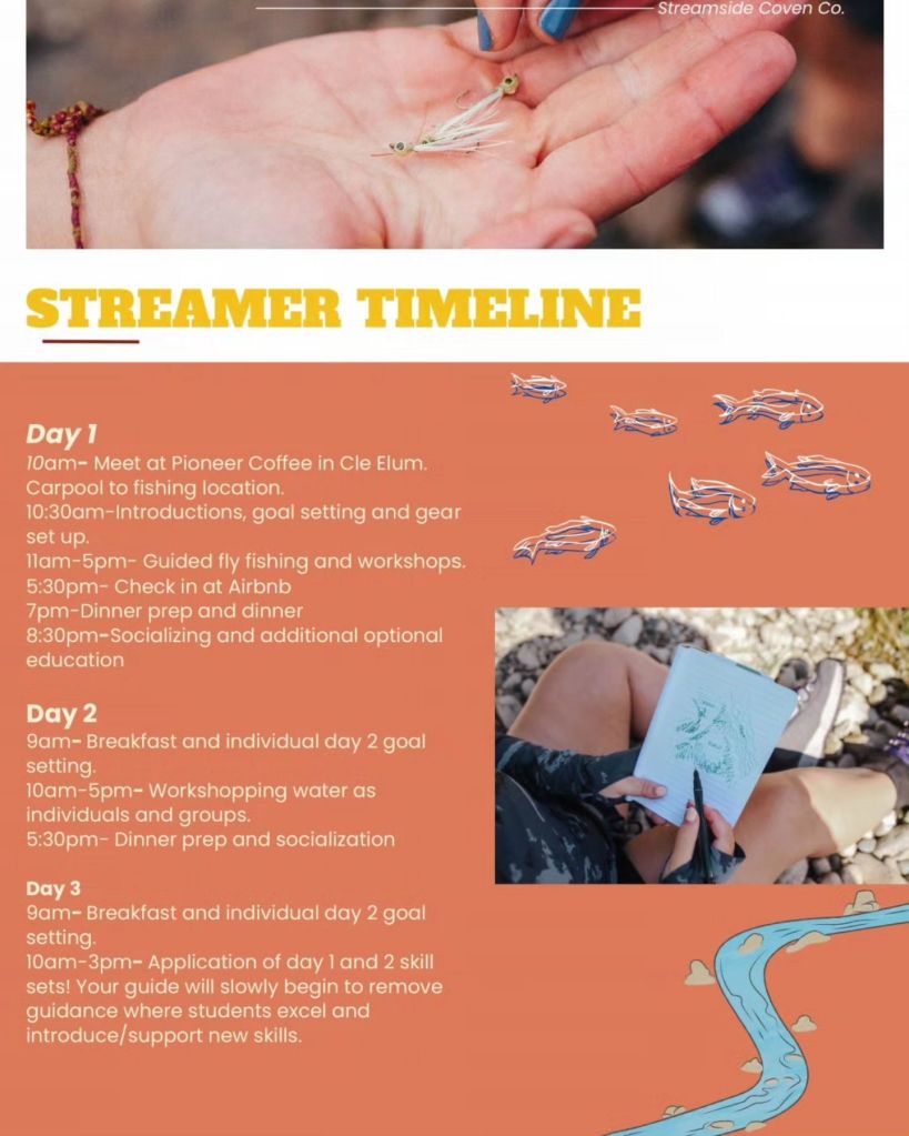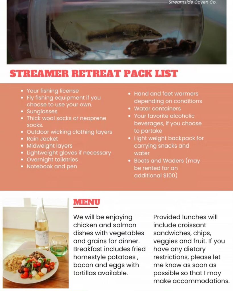I use a lot of my own fly designs and patterns that no other guide has and have spent the past 10 years fine tuning my tying and patterns specific to this river. I have flies, leaders, tippets, and fly rods and reels, and always welcome anglers to bring their own gear. If you need waders and boots I can arrange for a rental. I support my local fly shop for my trips as well as it is important to me that our local shops stay open.