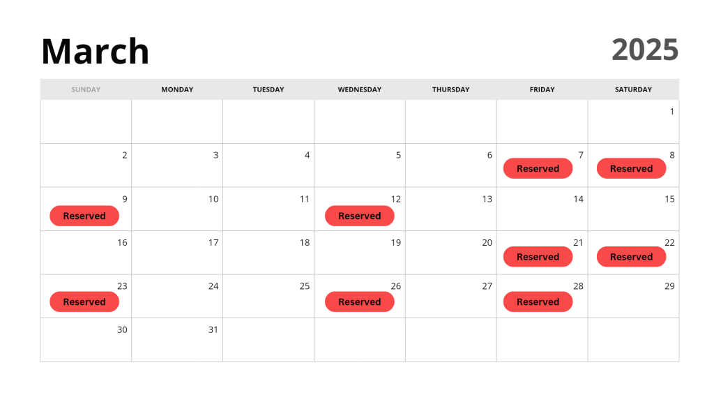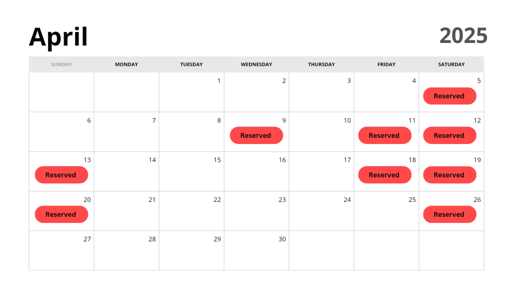There are 30 days left open for Spring Bookings. Once they fill that’s it!