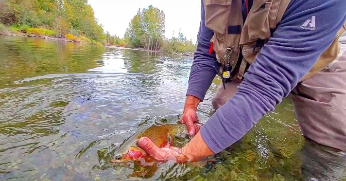 The orange and red like a blush painted on the underside. The paddle of a tail with peppered spots and that hue of chartreuse. The bronze in the head and jaw and that neon cut along the throat…the metallic magenta in the gill plate. I admire every fish I have the privilege of meeting or introducing. I admired this trout a little longer.